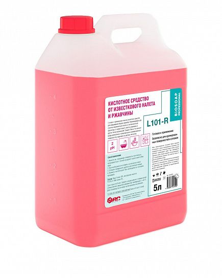 Объем, мл: 5000 Упаковка: канистра Форма выпуска: жидкость Серия: L101-R Торговая марка: BIOSOAP Обрабатываемая поверхность: кафель, фаянс, хром, эмаль, акрил Мин. партия и варианты упаковок: 1 / 4 -