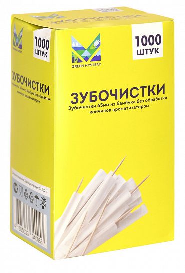 Длина, мм: 65 Материал: бамбук Вид товара: Зубочистки Торговая марка: Мистерия Количество штук в упаковке: 100 шт/упак Назначение: для холодного и горячего Мин. партия и варианты упаковок: 1 / 40 Зубочистки одноразовые GREEN MYSTERY 65 мм 100 шт/упак