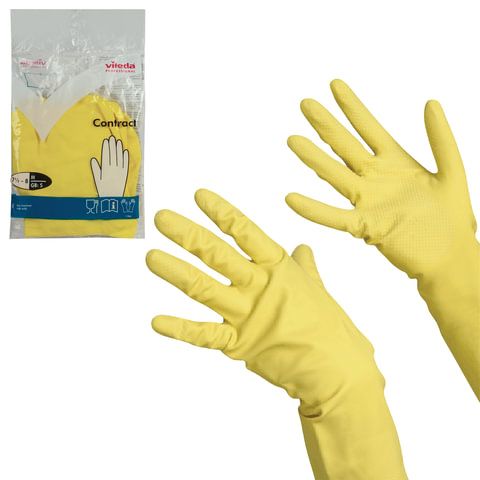 Цвет: желтый Вид товара: Перчатки хозяйственные Размер: XL Материал: латекс Упаковка: пакет Серия: КОНТРАКТ Мин. партия и варианты упаковок: 1 / 10 / 50 Перчатки хозяйственные латексные с х/б напылением VILEDA КОНТРАКТ размер M