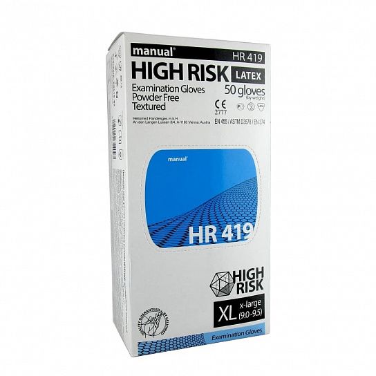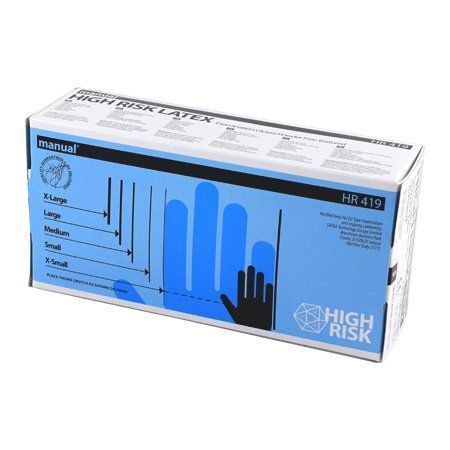 Цвет: синий Название дизайна, серии, модели, бренда: HIGH RISK MANUAL Вид товара: Перчатки одноразовые Размер: M Материал: латекс Упаковка: картонная упаковка Мин. партия и варианты упаковок: 1 / 10 -