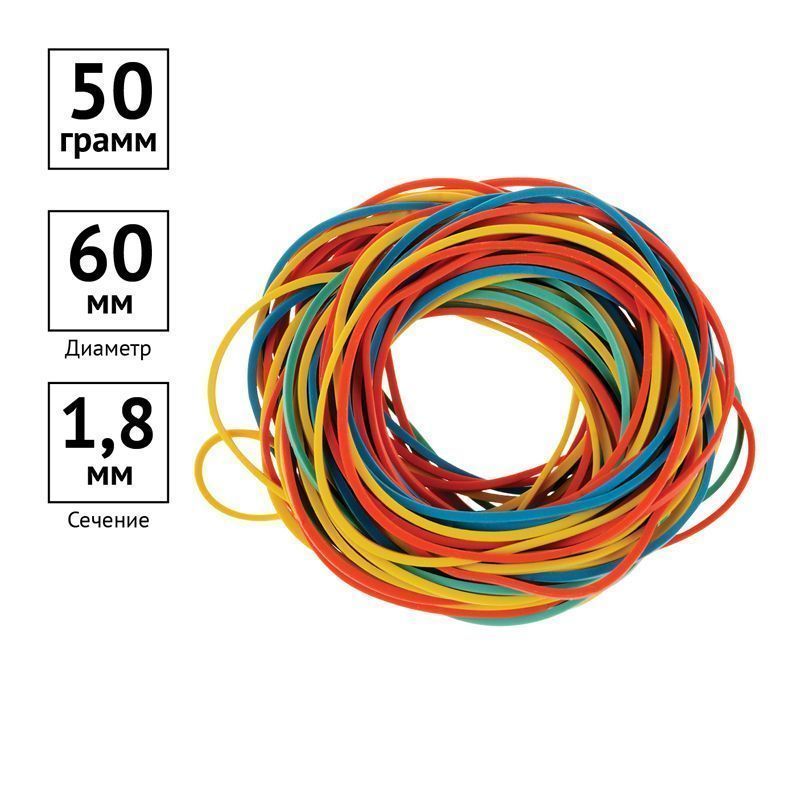 Банковская резинка OfficeSpace для денег и бумаг изготовлена из натурального каучука. Размер сечения – 1,8x1,8 мм, диаметр – 60 мм. Резинки упакованы в пакет по 50 граммов.Изделие может применяться в быту, в торговле, в аграрной сфере, в прикладном творчестве и т.д.