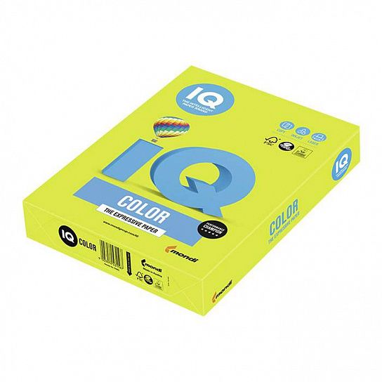 Формат: А4 Плотность, г/м2: 80 Количество листов: 500 Цвет: зеленый Мин. партия и варианты упаковок: 1 / 5 Бумага цветная для печати IQ COLOR А4 80 г/м2 500 л зеленая