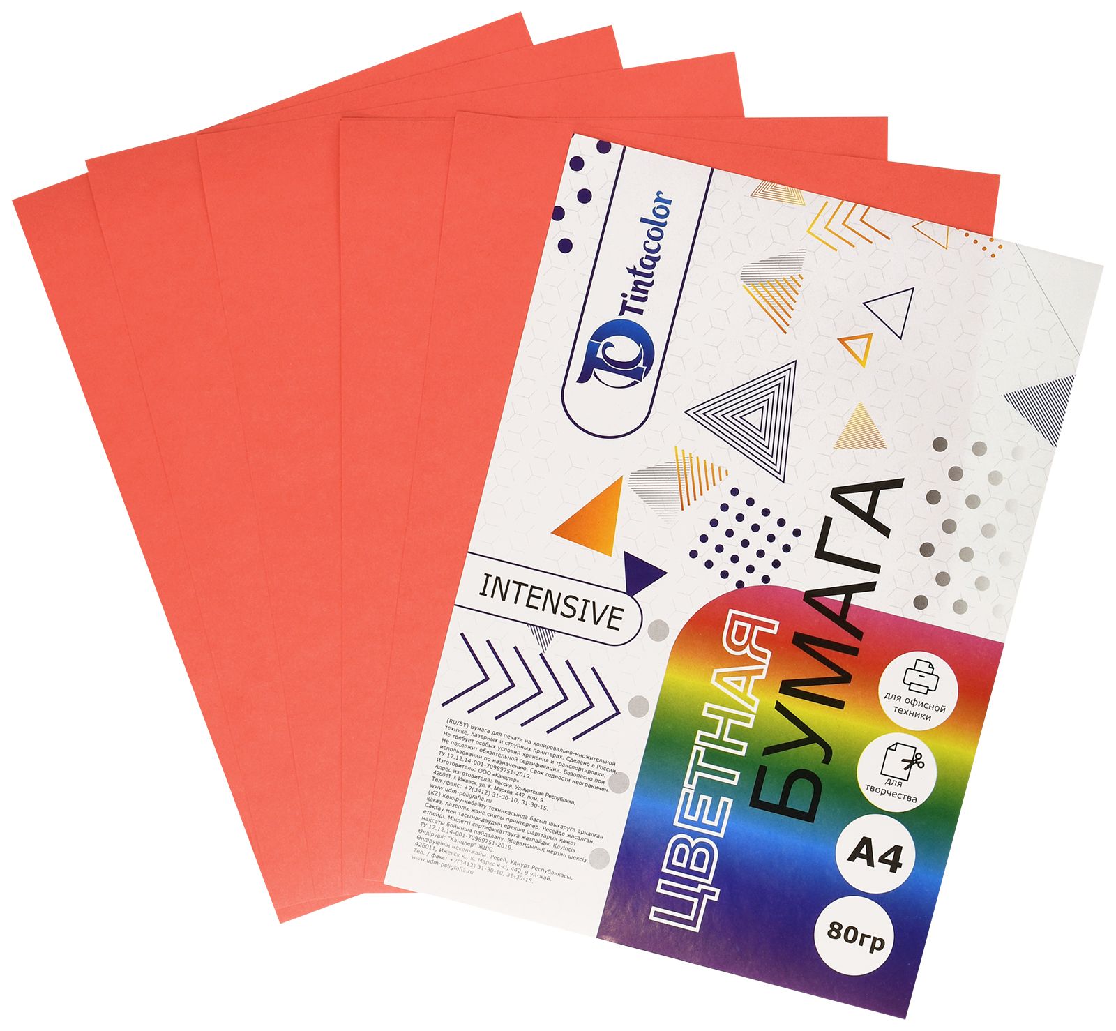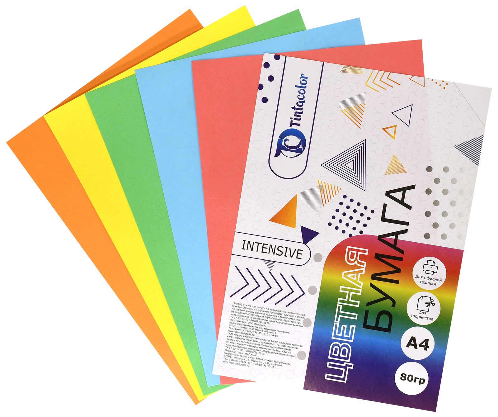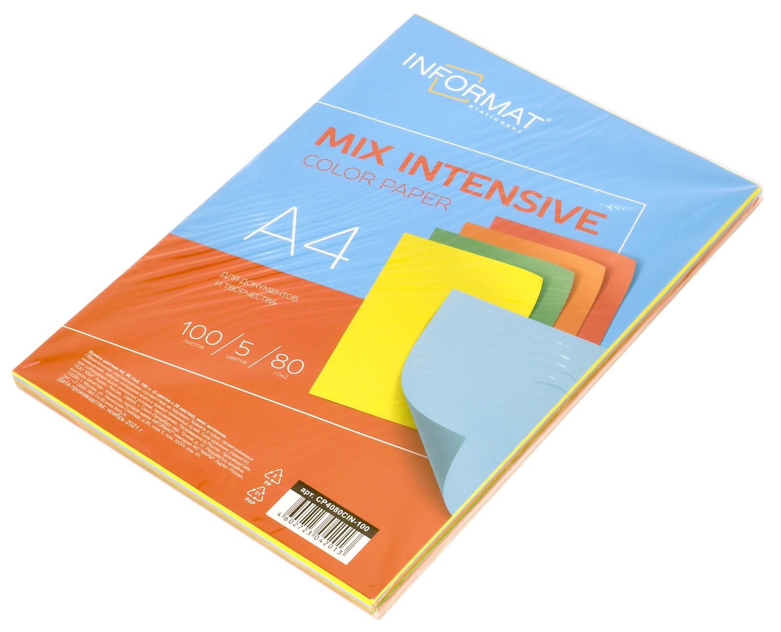 Формат: А4 Плотность, г/м2: 80 Количество листов: 100 Количество цветов: 5 Цвет: ассорти Серия: Intensive mix Мин. партия и варианты упаковок: 1 / 10 -