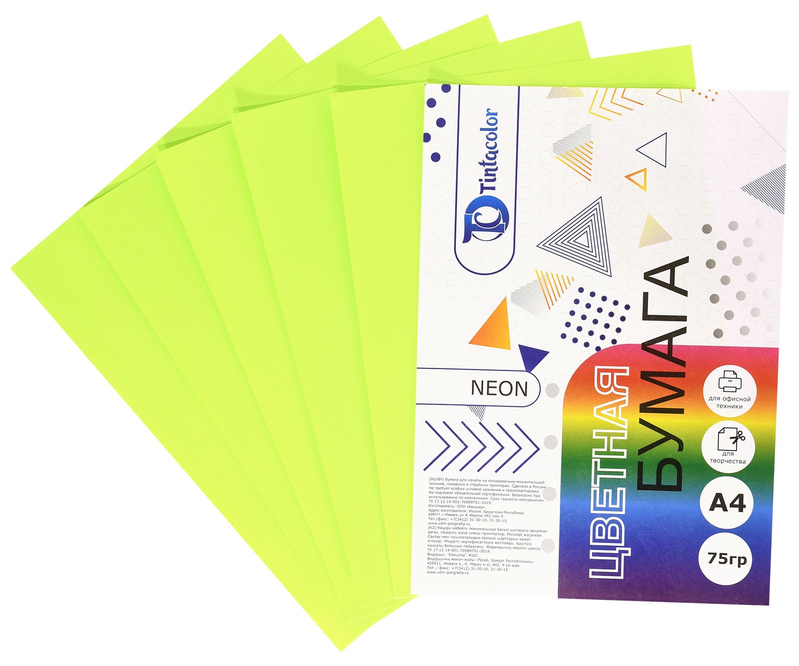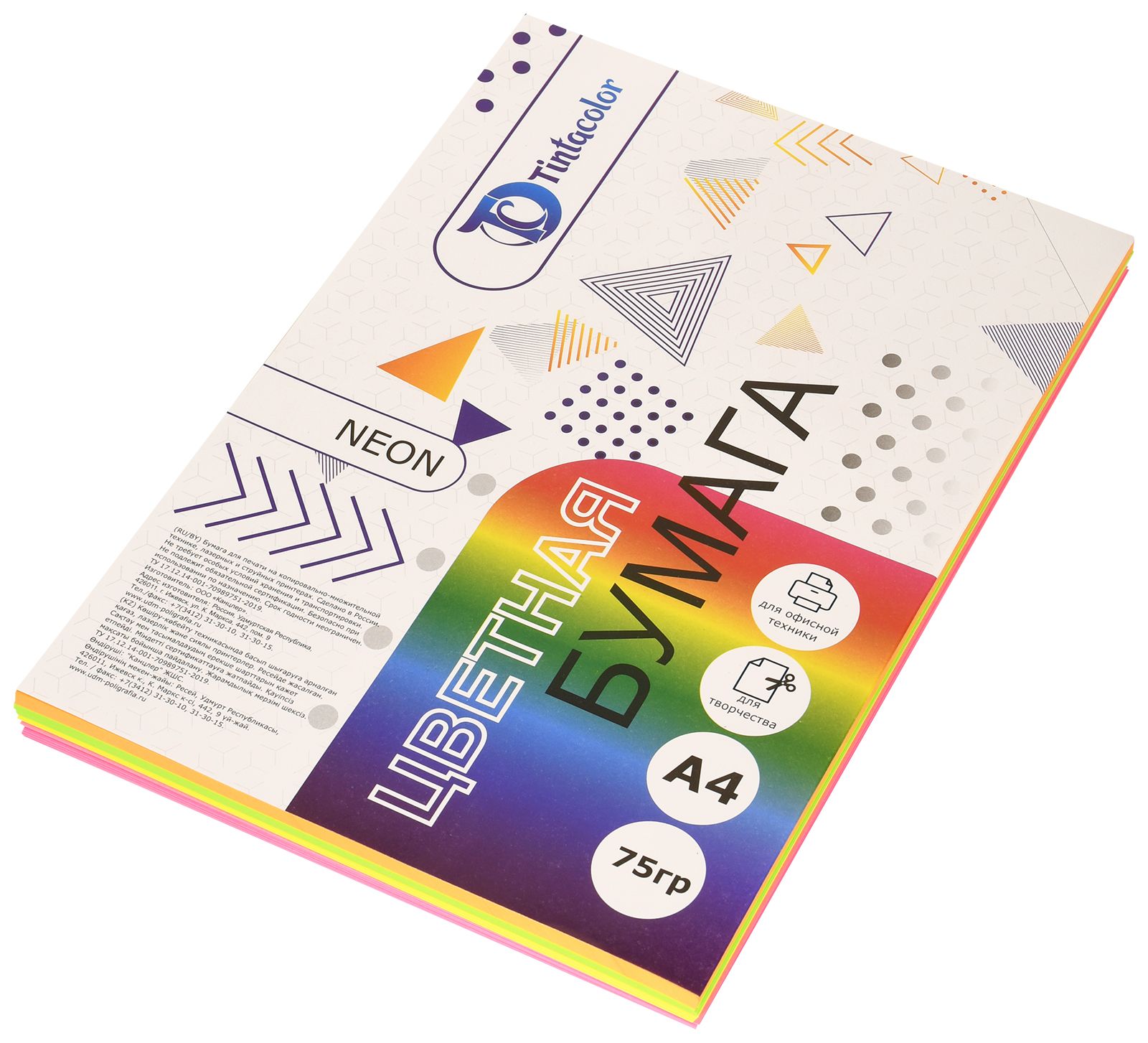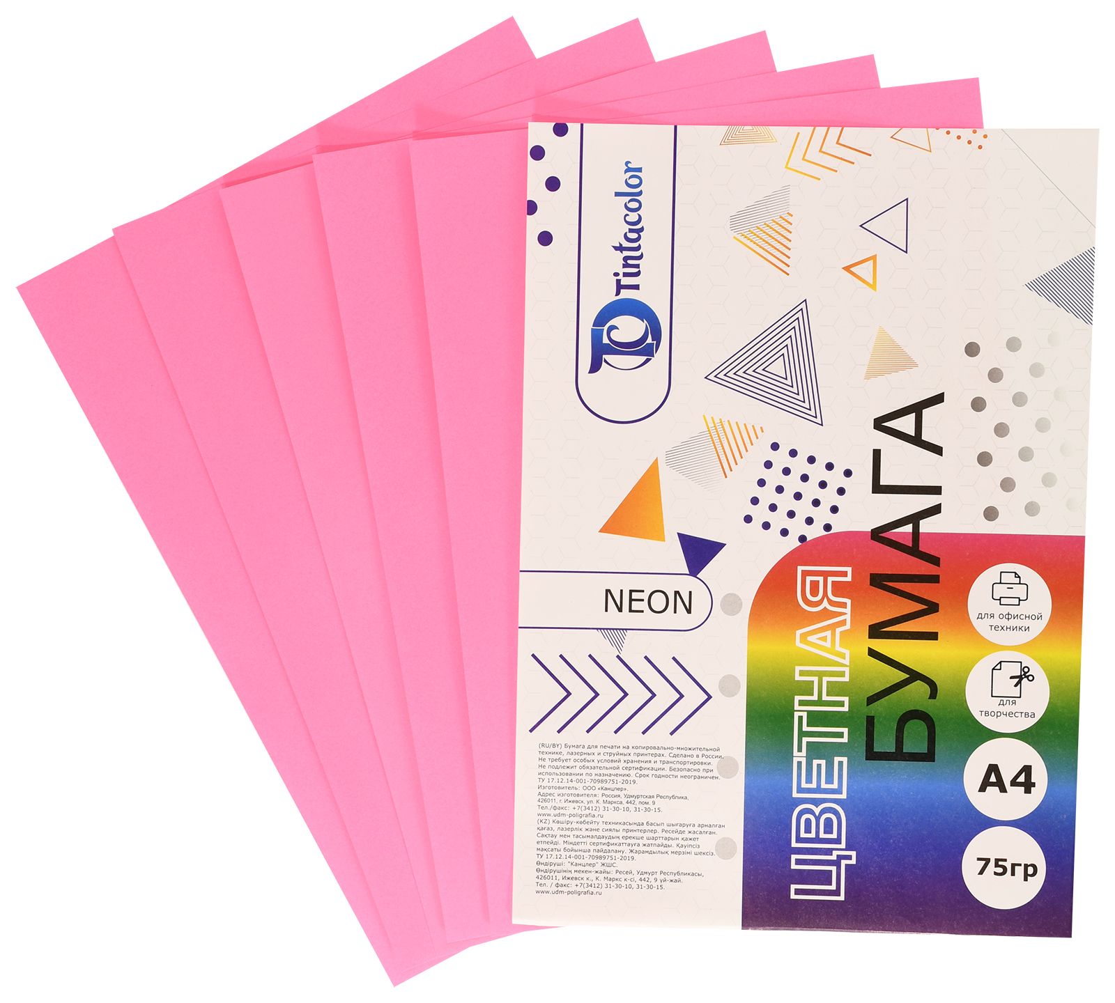 Формат: А4 Плотность, г/м2: 75 Количество листов: 100 Количество цветов: 5 Цвет: ассорти Серия: Neon mix Мин. партия и варианты упаковок: 1 / 10 -
