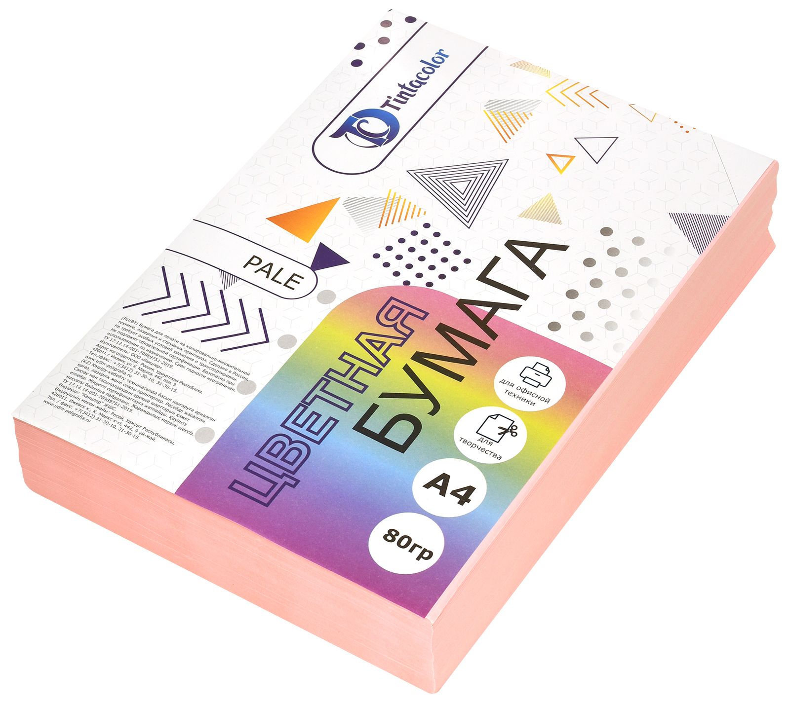 Формат: А4 Плотность, г/м2: 80 Количество листов: 500 Количество цветов: 1 Цвет: розовый Торговая марка: Tintacolor Мин. партия и варианты упаковок: 1 / 4 -