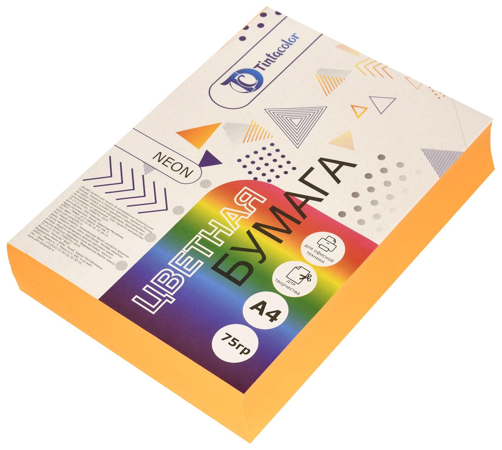 Формат: А4 Плотность, г/м2: 75 Количество листов: 500 Количество цветов: 1 Цвет: оранжевый Торговая марка: Tintacolor Мин. партия и варианты упаковок: 1 / 4 -
