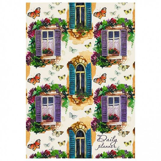 Формат: А5- Количество листов: 112 Материал обложки: тв.обл. с порол. Линовка: линия Вид изделия: Ежедневник Степень датированности: недатированный Мин. партия и варианты упаковок: 1 / 16 Ежедневник А5- недатированный ОКНА В ЦВЕТАХ 112 л. твердая обложка с поролоном, блёстки