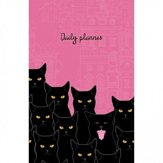 Формат: А5 Количество листов: 136 Материал обложки: инт.обл. Вид изделия: Ежедневник Степень датированности: недатированный Плотность блока, г/м2: 70 Мин. партия и варианты упаковок: 1 / 16 Ежедневник А5 недатированный КОМАНДА КОШЕК 136 л. интегральная обложка, мокрый шелк