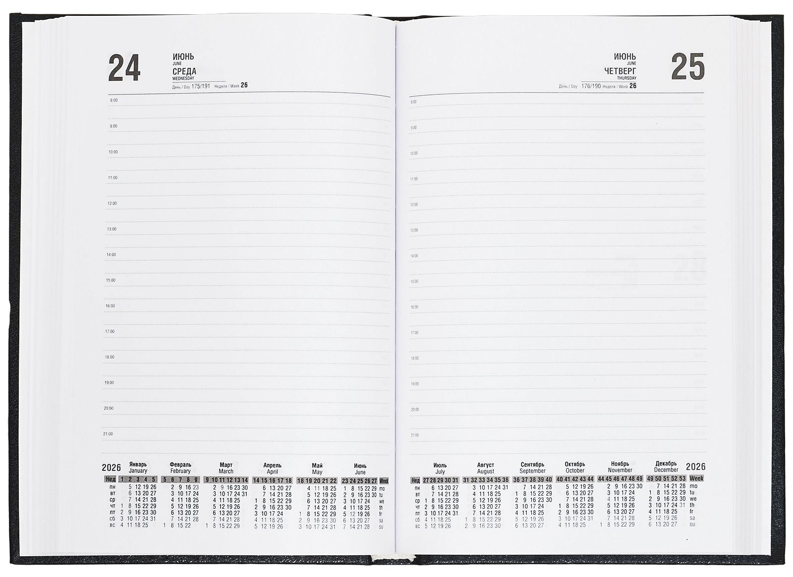 Формат: А5 Количество листов: 160 Материал обложки: бумвинил Линовка: линия Вид изделия: Ежедневник Степень датированности: датированный Мин. партия и варианты упаковок: 1 / 16 Ежедневник А5 датированный 2026г. LITE ЧЕРНЫЙ 160 л. черный, твердая обложка бумвинил, фольга
