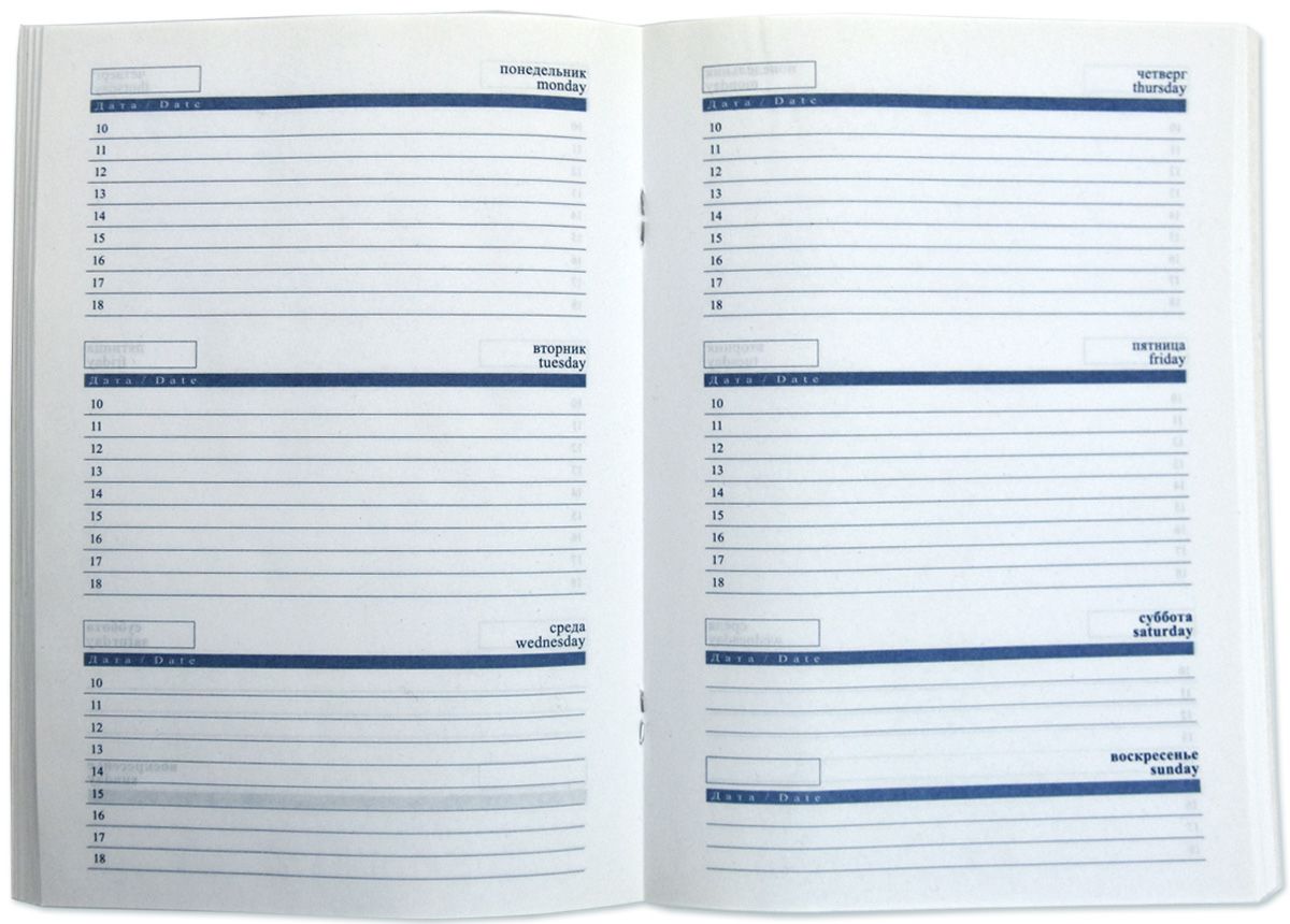 Формат: А5 Количество листов: 48 Материал обложки: мелованный картон Вид изделия: Еженедельник Степень датированности: недатированный Плотность блока, г/м2: 65 Мин. партия и варианты упаковок: 1 / 40 -