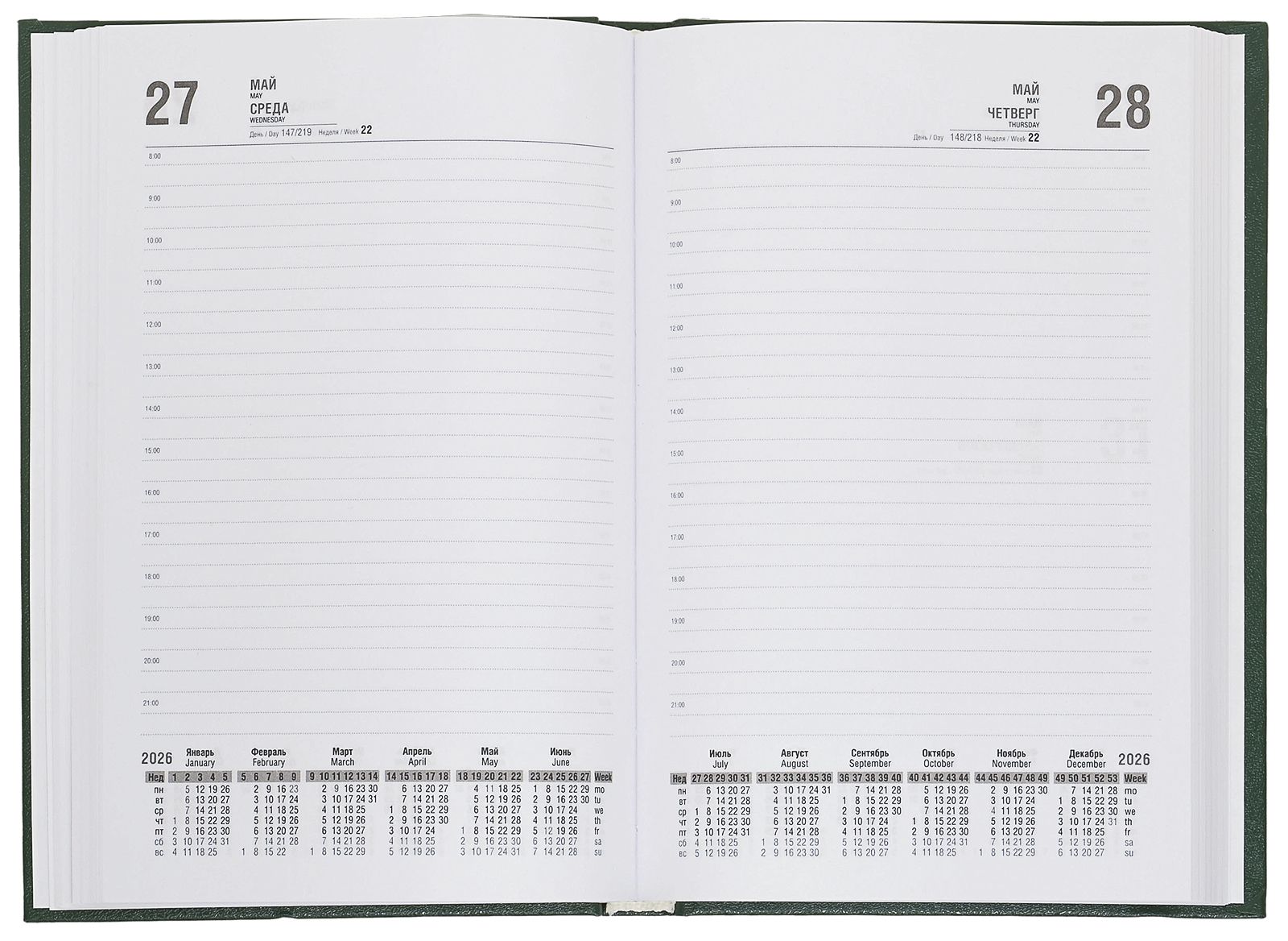 Формат: А5 Количество листов: 160 Материал обложки: бумвинил Линовка: линия Вид изделия: Ежедневник Степень датированности: датированный Мин. партия и варианты упаковок: 1 / 16 Ежедневник А5 датированный 2026г. LITE ЗЕЛЕНЫЙ 160 л. зеленый, твердая обложка бумвинил, фольга