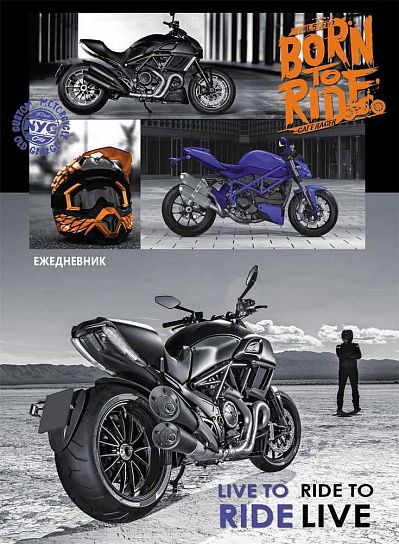Формат: А5 Количество листов: 80 Вид изделия: Ежедневник Степень датированности: недатированный Плотность блока, г/м2: 60 Перфорированные уголки: Нет Мин. партия и варианты упаковок: 1 / 20 Ежедневник А5 недатированный БАЙК И МОТОЦИКЛИСТ 80 л. твердая обложка, глянцевая ламинация