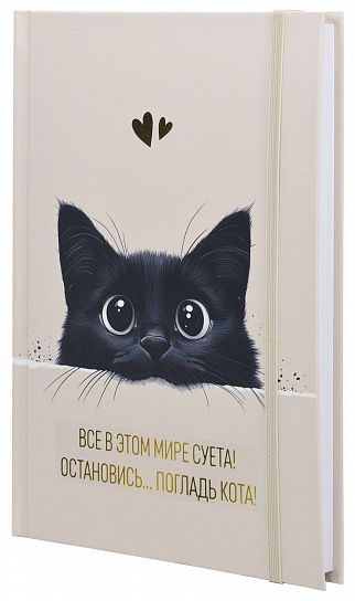 Формат: А5 Количество листов: 128 Материал обложки: 7БЦ Линовка: линия Вид изделия: Ежедневник Степень датированности: недатированный Мин. партия и варианты упаковок: 1 / 10 Ежедневник А5 недатированный LITE ПОГЛАДЬ КОТА 128 л. с дизайном, твердая обложка 7БЦ, матовая ламинация, фольга, застежка на резинке