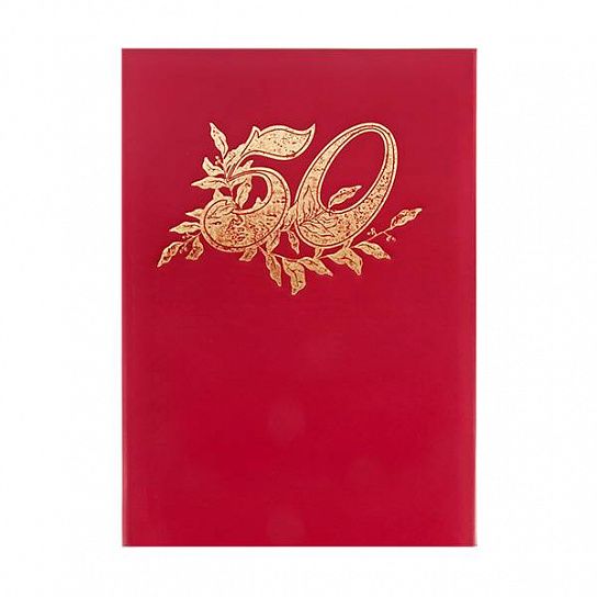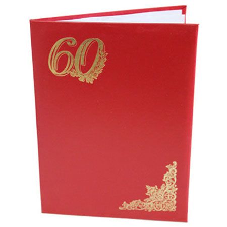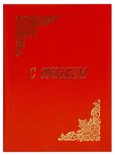 Адресная папка «60 лет» изготовлена из качественного кожзама. Выполненна в красном цвете. Лицевая сторона украшена надписью «60» над ветвью, выполнеными золотым тиснением. Углы папки укреплены металлическими уголками золотистого цвета. Перейти в карточку товара