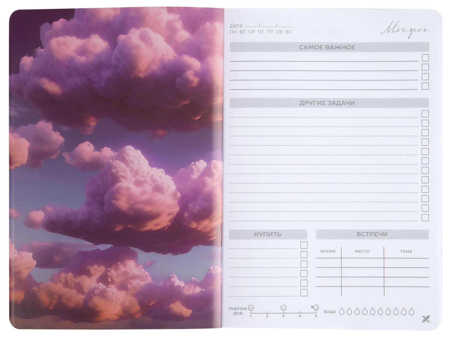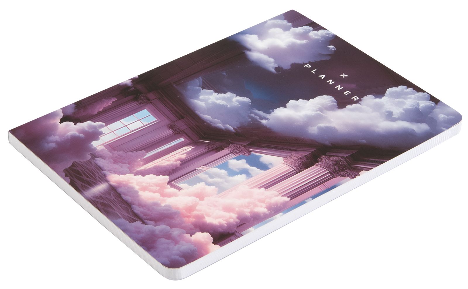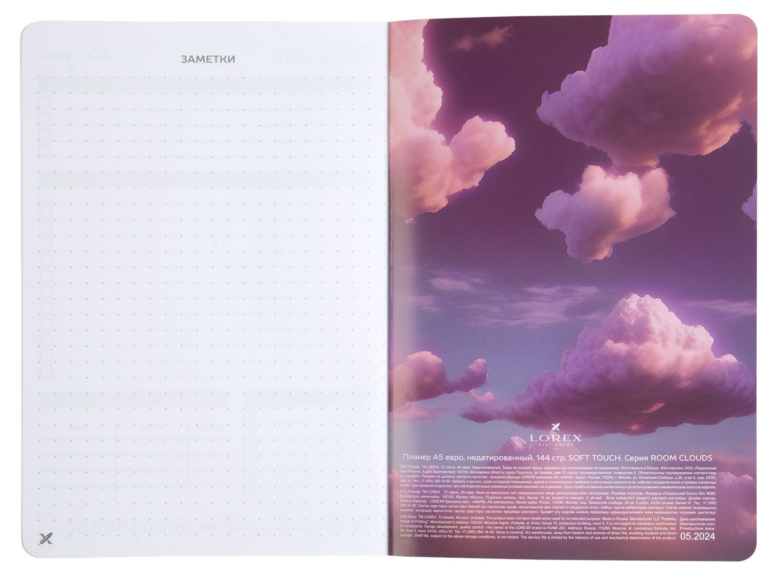 Формат: А5 Количество листов: 72 Тип крепления: швейно-клеевое Материал обложки: мелованный картон Вид изделия: Планер Степень датированности: недатированный Мин. партия и варианты упаковок: 1 / 36 Планер А5 недатированный LOREX HANGING CLOUDS 72 листа, 145х207 мм, мягкая обложка, мелованный картон soft touch