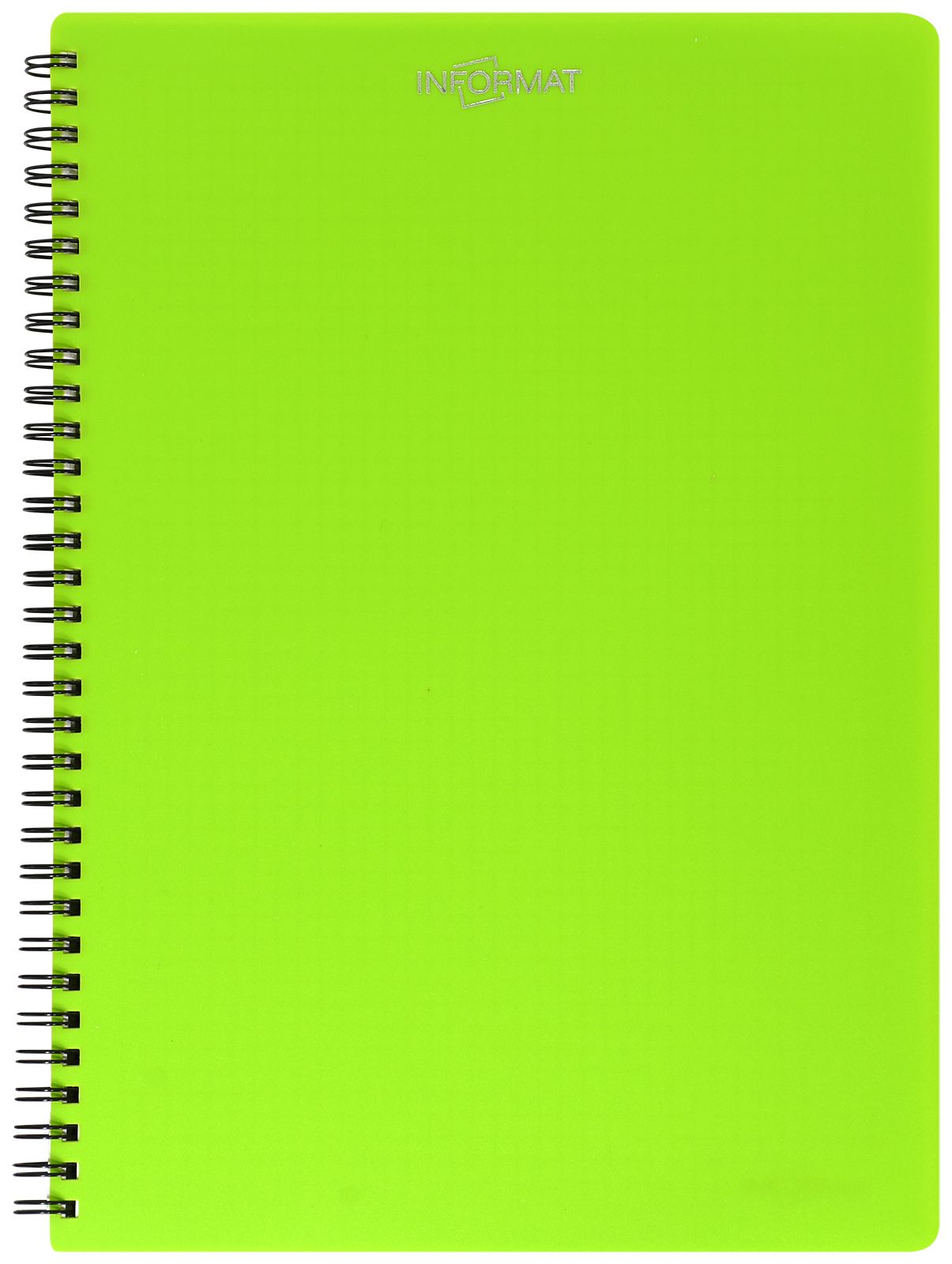 Тетрадь на гребне INFORMAT салатовая формата А4 надежный товар для ежедневных записей и заметок. Содержит 96 листов, а также удобную пластиковую обложку, которая защищает содержание от повреждений и имеет повышенную износостойкость.