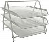 Практичный горизонтальный лоток INFORMAT с 3 секциями, белый. Выполнен из металлической сетки, предназначен для удобного хранения бумажной продукции формата А4.