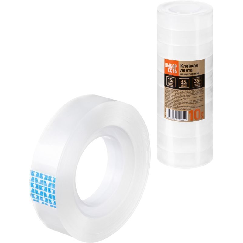 Имеет длину 33 м и ширину 15 мм, обладает высокой клеящей способностью. Отличается прозрачностью и плотностью 35 мкм. Может быть использована в диспенсере. В упаковке 10 штук.