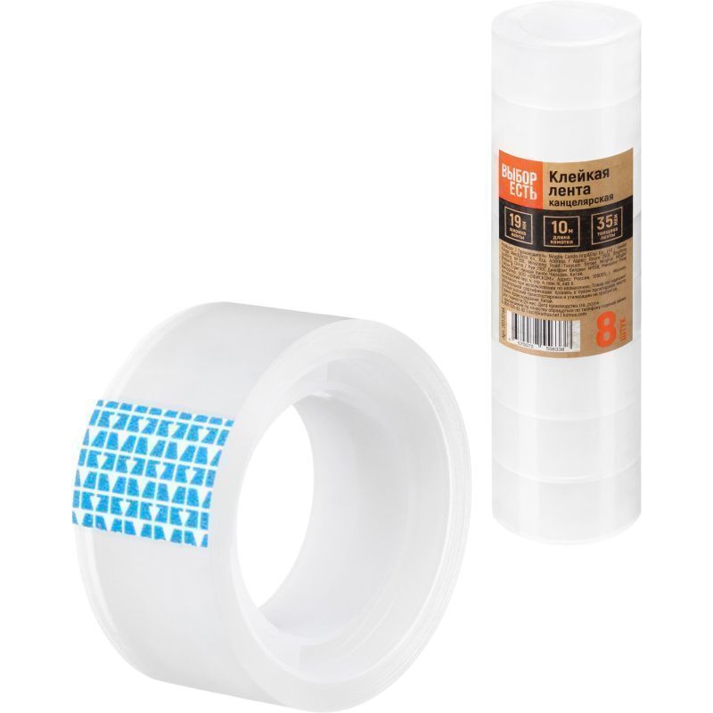 Имеет длину 10 м и ширину 19 мм, обладает высокой клеящей способностью. Отличается прозрачностью и плотностью 35 мкм. Может быть использована в диспенсере. В упаковке 8 штук.
