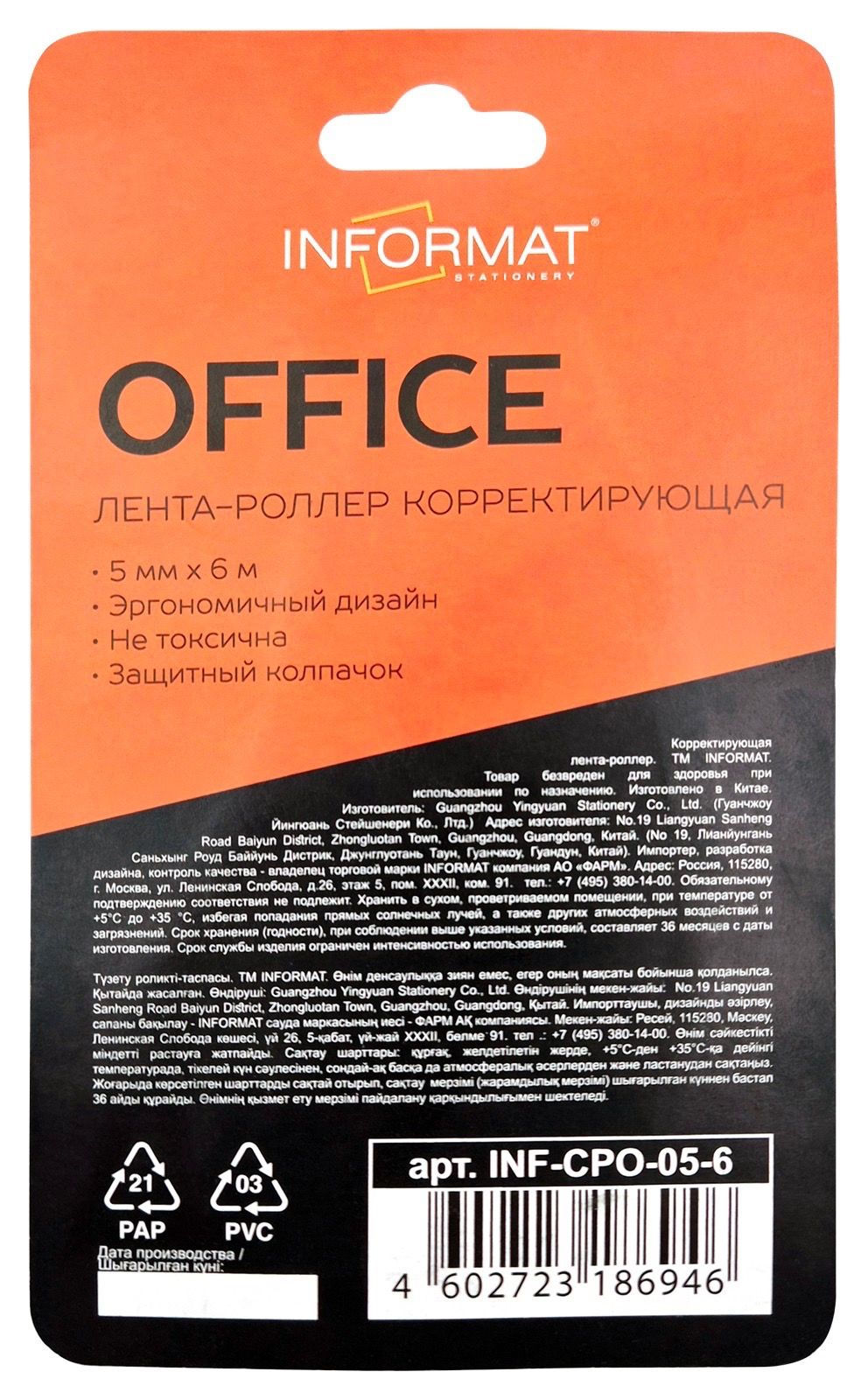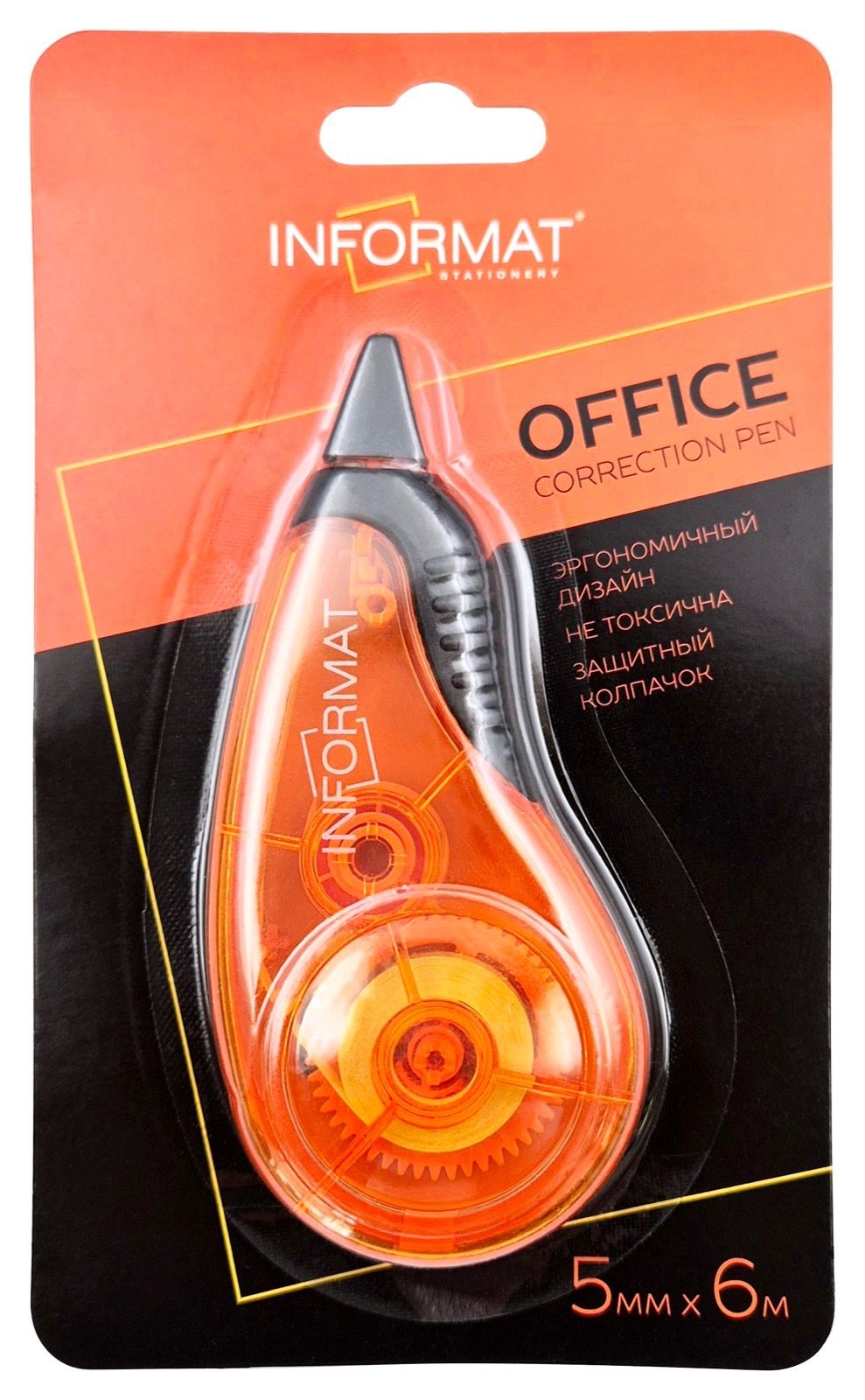 Механизм корректора: прямой ход ленты Цвет корпуса: оранжевый Упаковка: блистер Торговая марка: INFORMAT Размер корпуса (ДхШхВ), мм: 52х98х14 мм Эргономичный корпус: Нет Мин. партия и варианты упаковок: 1 / 12 / 288 -