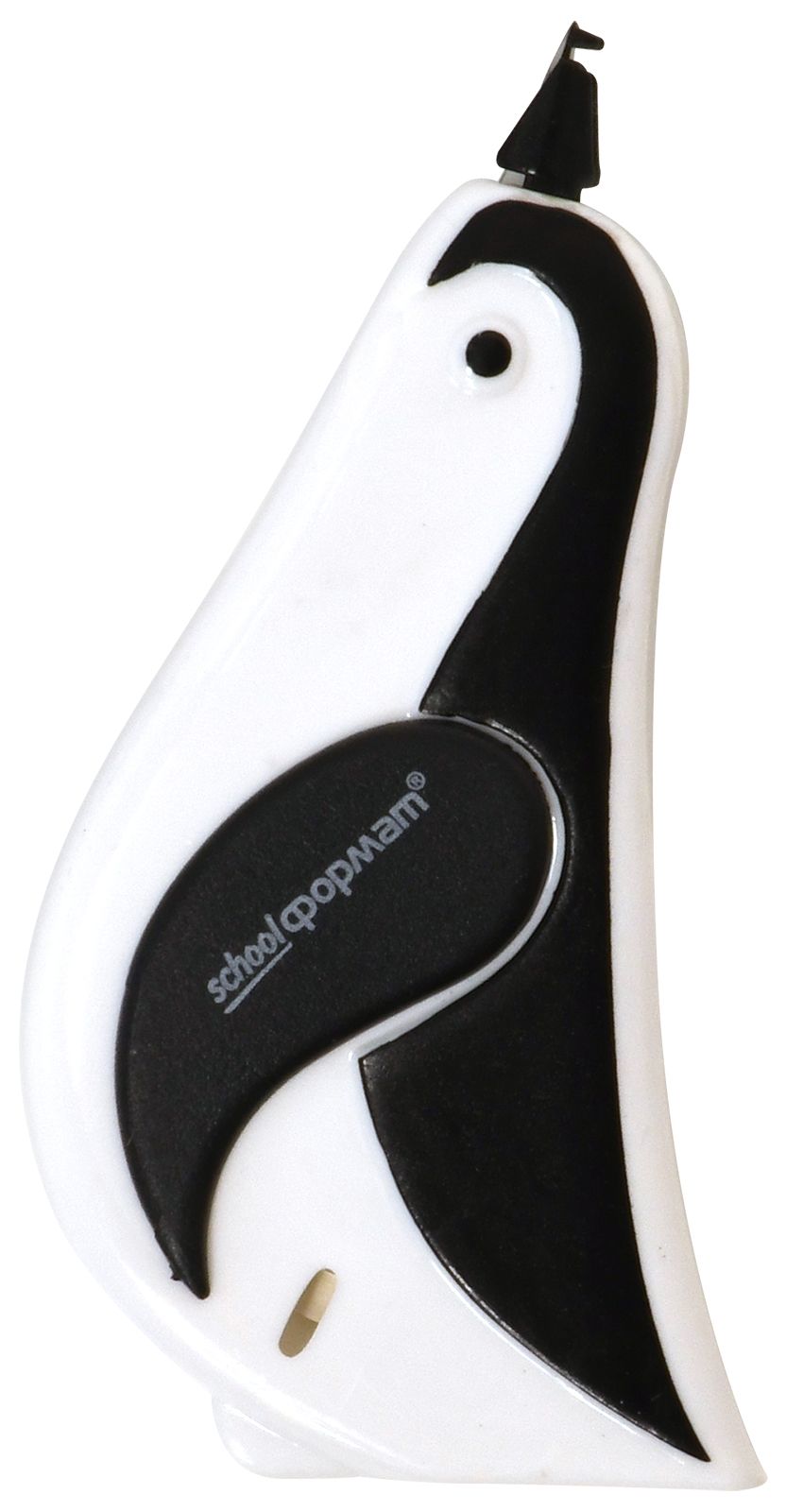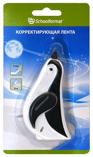 Механизм корректора: прямой ход ленты Цвет корпуса: черно-белый Упаковка: блистер Серия: ПИНГВИН Торговая марка: Schoolformat Размер корпуса (ДхШхВ), мм: 40х95х14 Мин. партия и варианты упаковок: 1 / 12 / 288 -