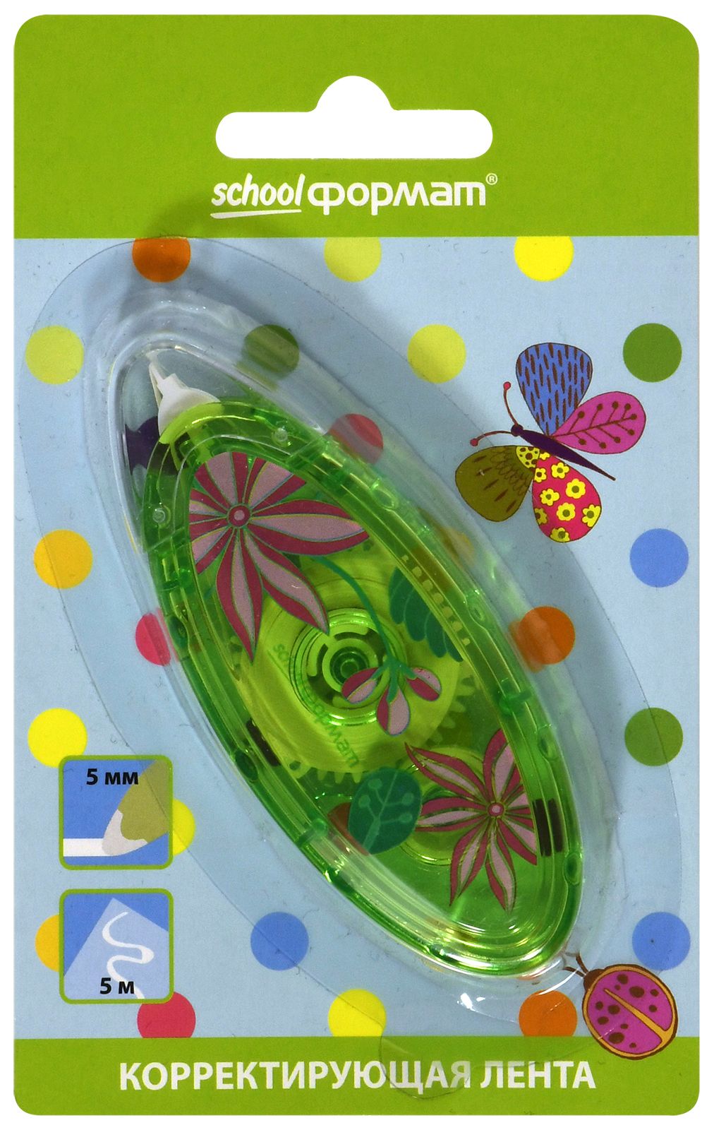 Механизм корректора: прямой ход ленты Цвет корпуса: ассорти Упаковка: блистер Серия: УЗОР Торговая марка: Schoolformat Размер корпуса (ДхШхВ), мм: 34х80х13 мм Мин. партия и варианты упаковок: 1 / 12 / 288 Корректирующая лента-роллер Schoolformat УЗОР 5 мм х 5 м, прямой ход ленты, цвет корпуса ассорти