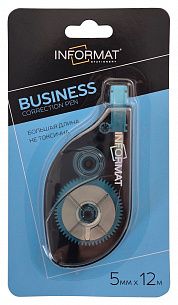 Механизм корректора: прямой ход ленты Цвет корпуса: черный Упаковка: блистер Серия: BUSINESS Торговая марка: INFORMAT Размер корпуса (ДхШхВ), мм: 91х46х12,5 мм Мин. партия и варианты упаковок: 1 / 36 / 288 -
