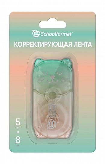 Механизм корректора: прямой ход ленты Цвет корпуса: зеленый Упаковка: блистер Серия: ГРАДИЕНТ-КОТЕНОК Торговая марка: Schoolformat Размер корпуса (ДхШхВ), мм: 75х35х13 мм Мин. партия и варианты упаковок: 1 / 24 / 288 -
