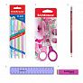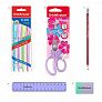 | Комплектация набора: | 4 ручки, карандаш, линейка, ластик, ножницы |