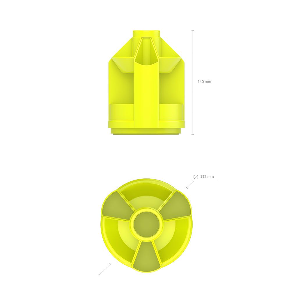 Цвет: желтый Материал: пластик Тонировка корпуса: Нет Наличие вращающейся основы: Да Серия: MINI DESK PASTEL С наполнением: Нет Мин. партия и варианты упаковок: 1 / 8 Подставка для канцелярских принадлежностей ErichKrause MINI DESK PASTEL вращающаяся, 10 отделений, 112х112х140 мм, желтый пластик