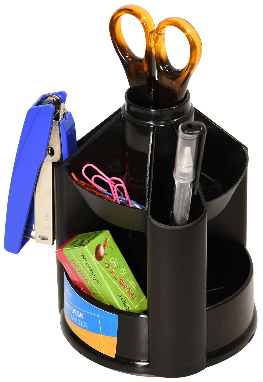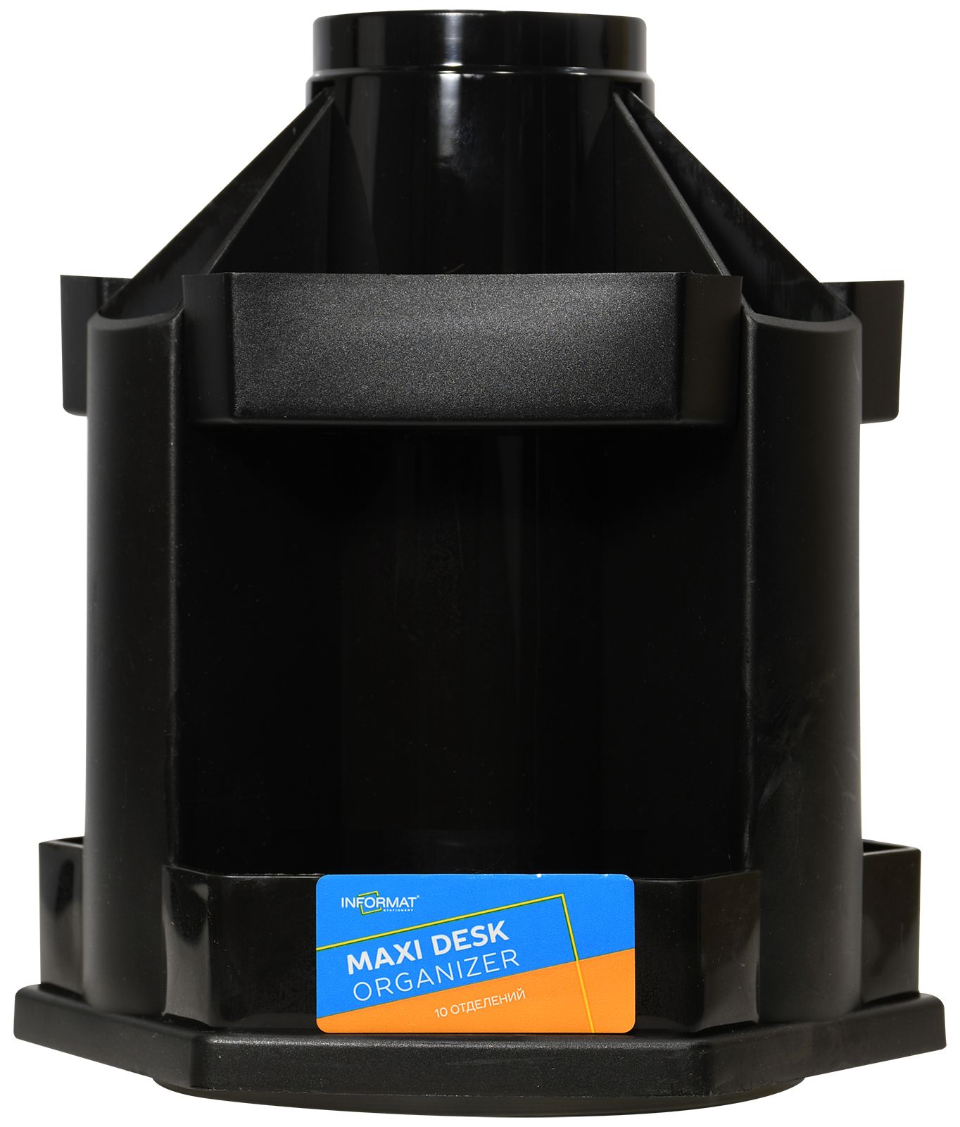 Цвет: черный Материал: пластик Тонировка корпуса: Нет Наличие вращающейся основы: Да Серия: MINI DESK С наполнением: Нет Мин. партия и варианты упаковок: 1 / 10 Подставка для канцелярских принадлежностей INFORMAT MINI DESK вращающаяся, 10 отделений, 107x107x140 мм, черный пластик