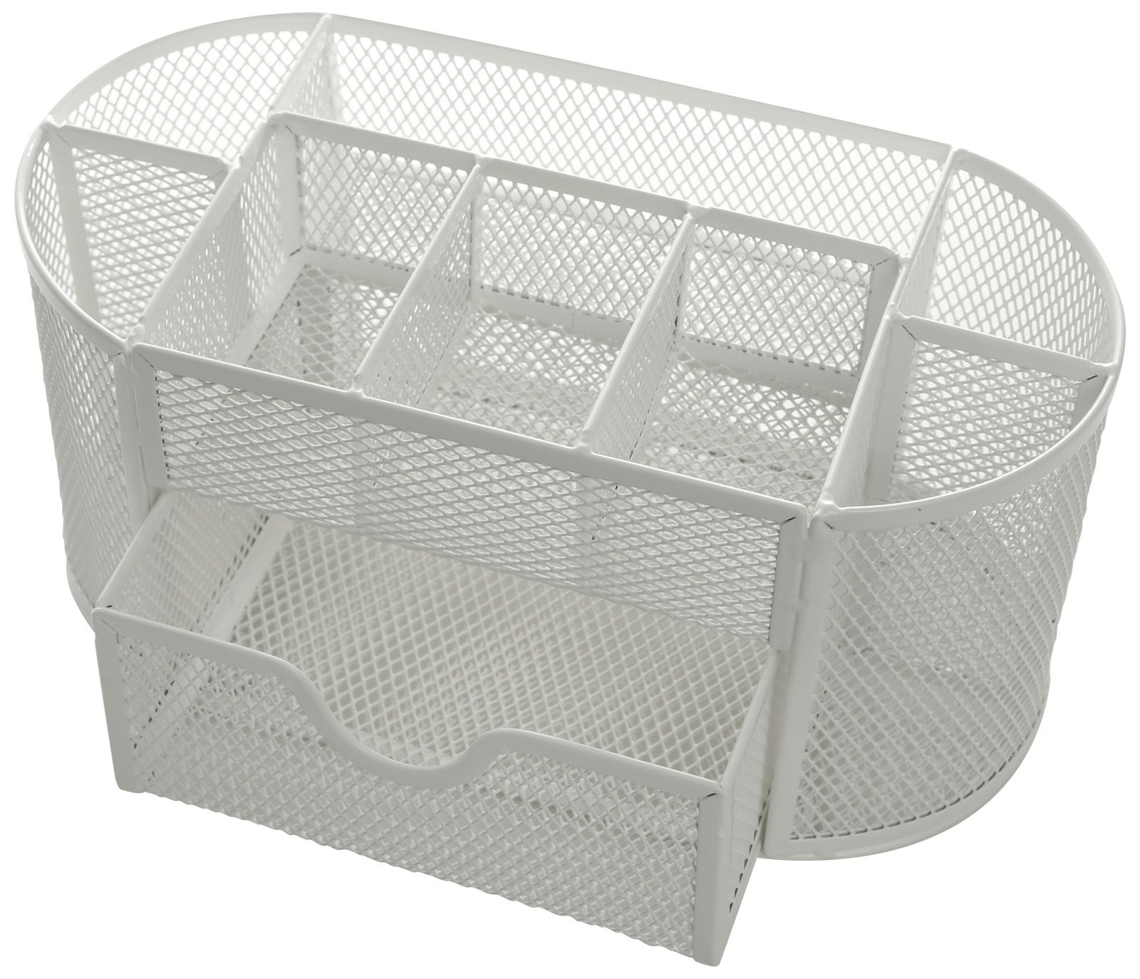 Цвет: белый Материал: металл Тонировка корпуса: Нет Наличие вращающейся основы: Нет С наполнением: Нет Торговая марка: INFORMAT Мин. партия и варианты упаковок: 1 / 12 Подставка для канцелярских принадлежностей INFORMAT 7 отделений, 125х220х140 мм, белый металл