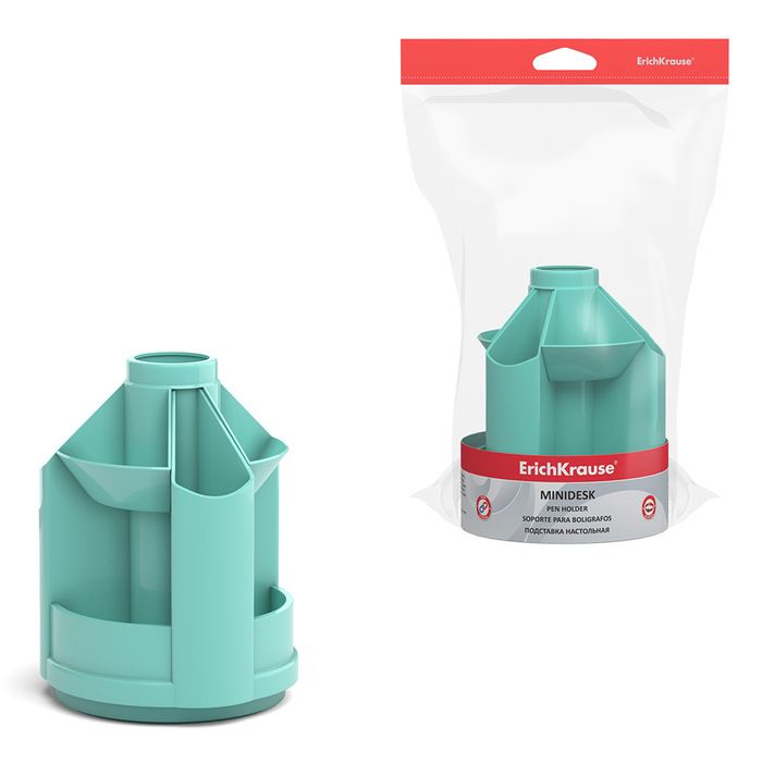 Цвет: мятный Материал: пластик Тонировка корпуса: Нет Наличие вращающейся основы: Да Серия: MINI DESK PASTEL MINT С наполнением: Нет Мин. партия и варианты упаковок: 1 / 8 Подставка для канцелярских принадлежностей ErichKrause MINI DESK PASTEL MINT вращающаяся, 10 отделений, 112х112х140 мм, мятный пластик