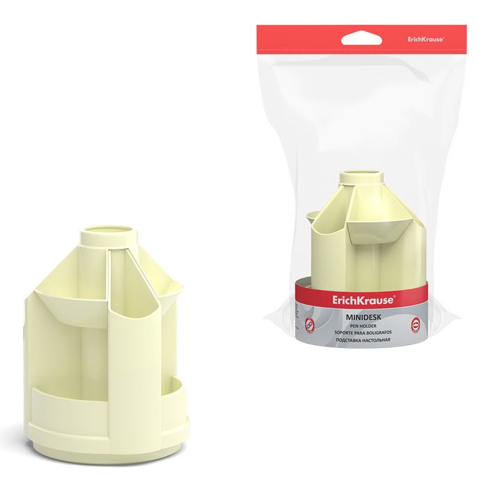 Цвет: желтый Материал: пластик Тонировка корпуса: Нет Наличие вращающейся основы: Да Серия: MINI DESK PASTEL С наполнением: Нет Мин. партия и варианты упаковок: 1 / 8 Подставка для канцелярских принадлежностей ErichKrause MINI DESK PASTEL вращающаяся, 10 отделений, 112х112х140 мм, желтый пластик