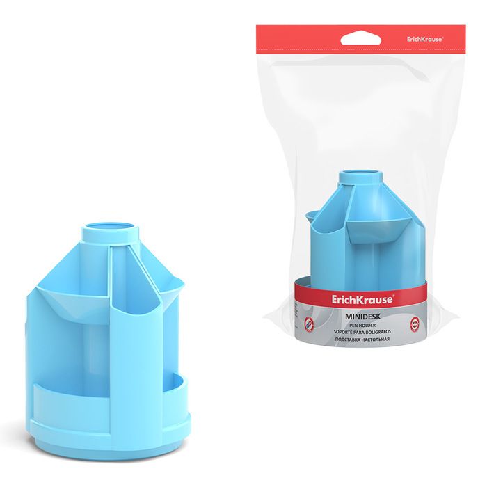 Цвет: голубой Материал: пластик Тонировка корпуса: Нет Наличие вращающейся основы: Да Серия: MINI DESK PASTEL С наполнением: Нет Мин. партия и варианты упаковок: 1 / 8 Подставка для канцелярских принадлежностей ErichKrause MINI DESK PASTEL вращающаяся, 10 отделений, 112х112х140 мм, голубой пластик