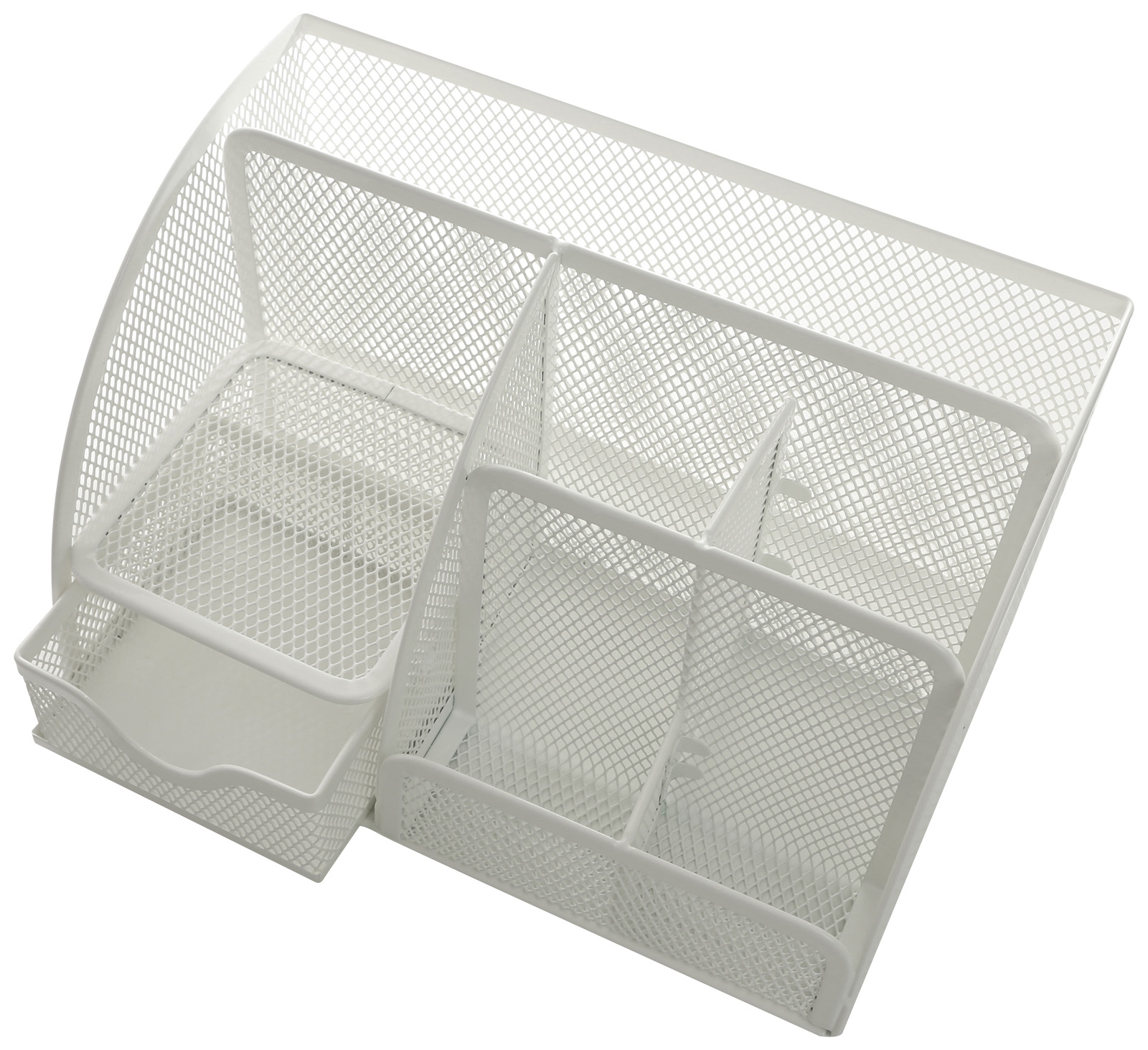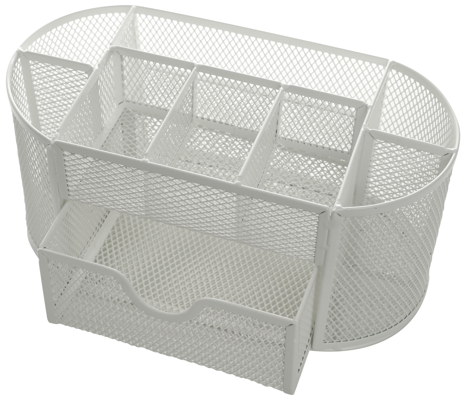 Цвет: белый Материал: металл Тонировка корпуса: Нет Наличие вращающейся основы: Нет С наполнением: Нет Торговая марка: INFORMAT Мин. партия и варианты упаковок: 1 / 12 Подставка для канцелярских принадлежностей INFORMAT 9 отделений, 105х220х110 мм, белый металл