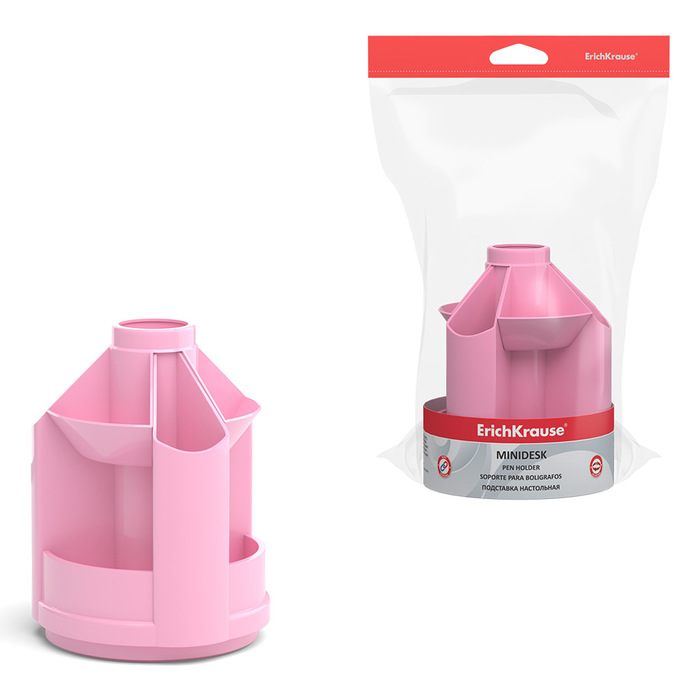 Цвет: розовый Материал: пластик Тонировка корпуса: Нет Наличие вращающейся основы: Да Серия: MINI DESK PASTEL С наполнением: Нет Мин. партия и варианты упаковок: 1 / 8 Подставка для канцелярских принадлежностей ErichKrause MINI DESK PASTEL вращающаяся, 10 отделений, 112х112х140 мм, розовый пластик