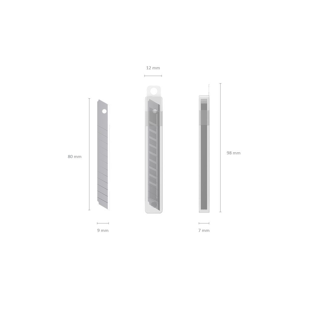 Сегментированное износостойкое стальное лезвие с двухсторонней заточкой для канцелярского ножа. Поставляется в пластиковом контейнере для безопасного хранения.