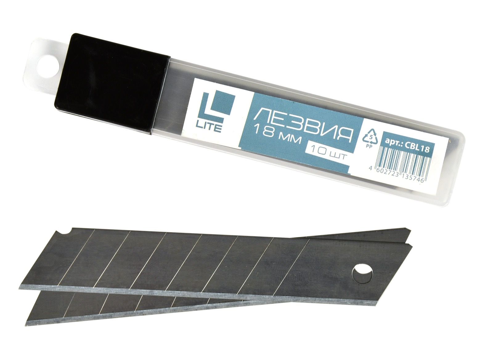 Сегментированное износостойкое стальное лезвие с двухсторонней заточкой для канцелярского ножа. Поставляется по 10 лезвий в пластиковом футляре для безопасного хранения.