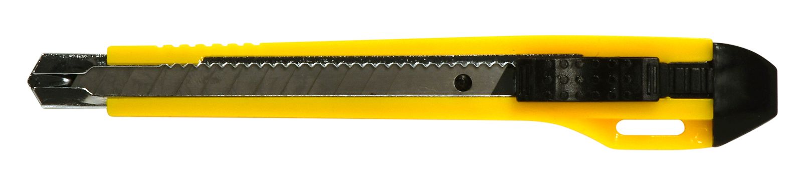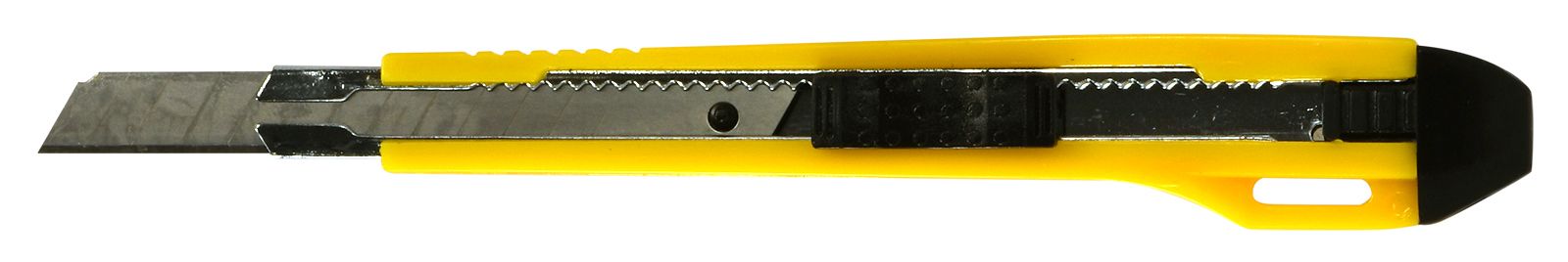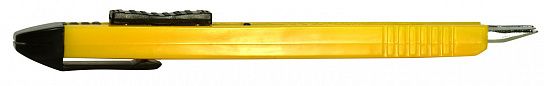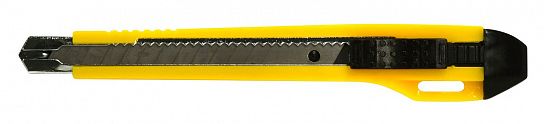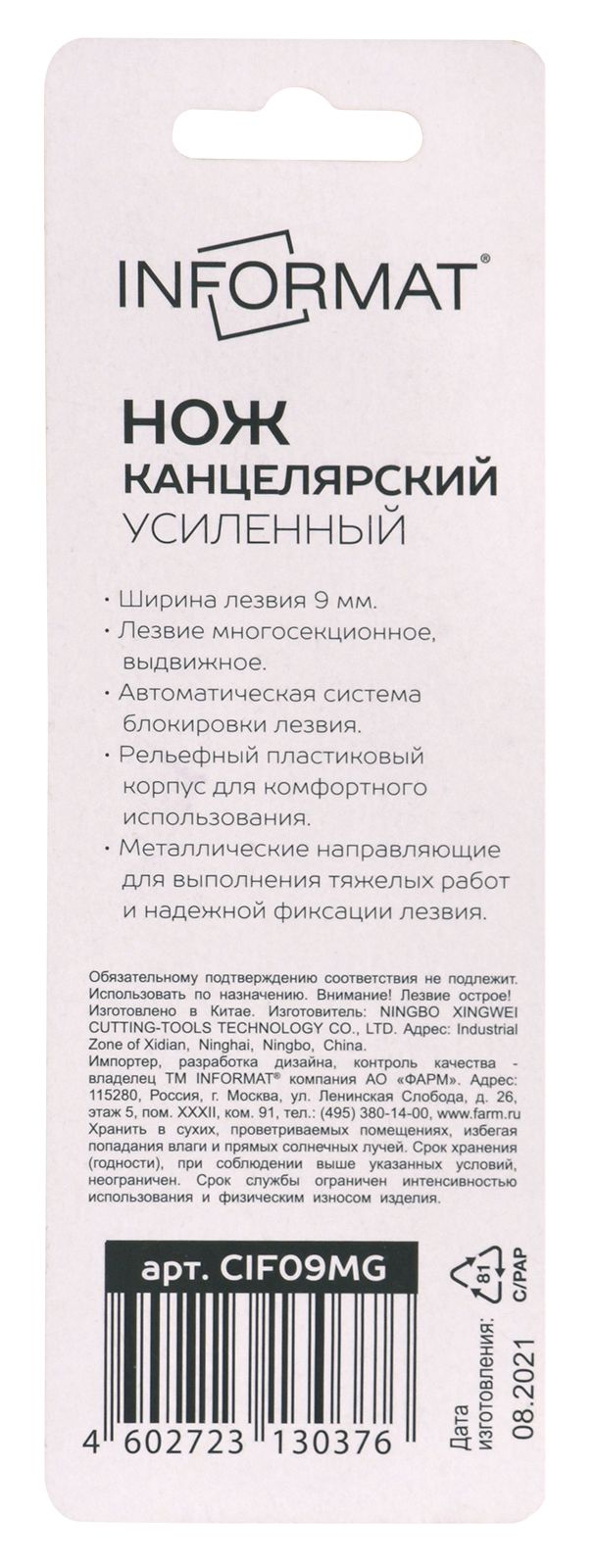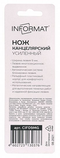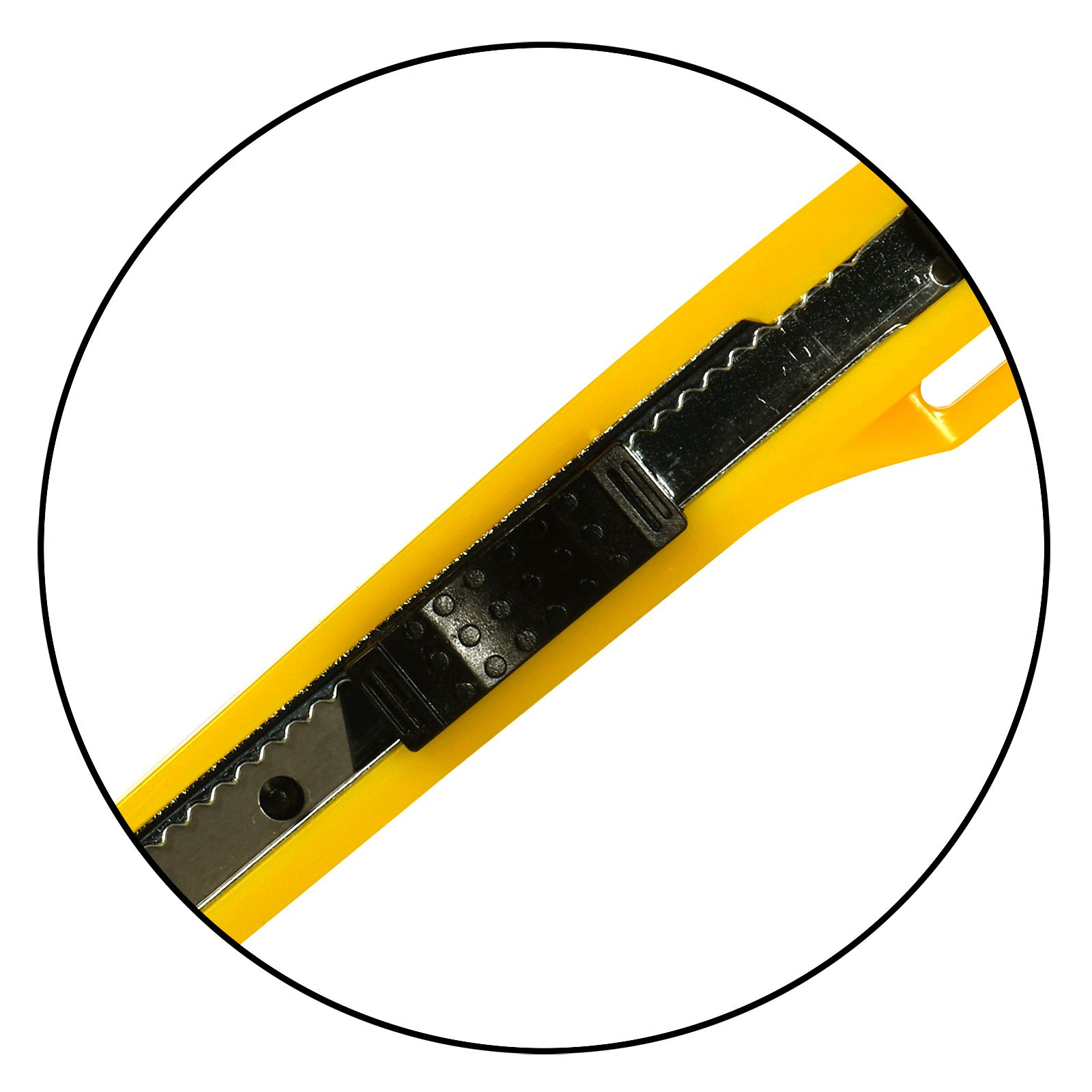 Нож канцелярский усиленный в блистере, с металлическими направляющими. Лезвие из высококачественной стали, выдвижное, многосекционное.