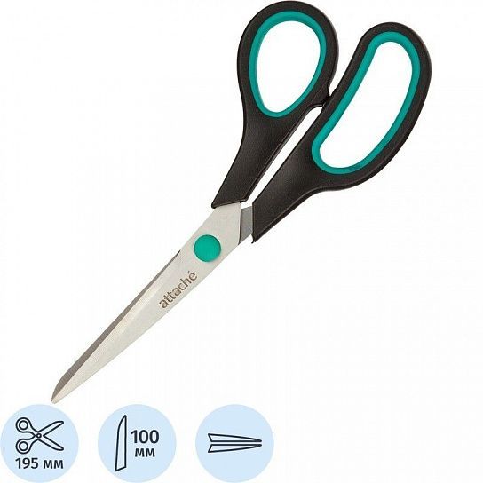 Наличие европодвеса: Да Упаковка: картонная упаковка try-me card Цвет основной: черно-бирюзовый Длина ножниц, мм: 195 Длина лезвия, мм: 100 Материал ручек: пластик с резиновыми вставками Мин. партия и варианты упаковок: 1 / 10 / 200 -