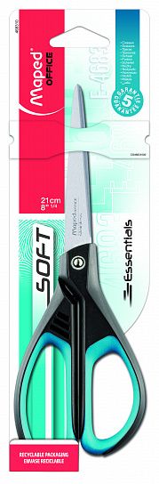 Наличие европодвеса: Да Упаковка: картонная упаковка Серия: SOFT Модель: ESSENTIALS Цвет основной: черно-синий Длина ножниц, мм: 210 Мин. партия и варианты упаковок: 1 / 24 / 192 Ножницы MAPED ESSENTIALS SOFT 210 мм черно-синие, эргономичные ручки пластиковые с резиновыми вставками