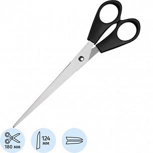 Наличие европодвеса: Да Упаковка: пакет Цвет основной: черный Длина ножниц, мм: 180 Длина лезвия, мм: 124 Материал ручек: пластик Мин. партия и варианты упаковок: 1 / 12 / 600 -