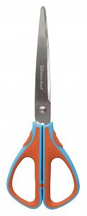 Наличие европодвеса: Да Упаковка: картонная упаковка Серия: COLLEGE Цвет основной: голубой и оранжевый Длина ножниц, мм: 203 Длина лезвия, мм: 121 Мин. партия и варианты упаковок: 1 / 12 / 144 -