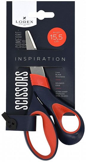 Наличие европодвеса: Да Упаковка: картонная упаковка try-me card Серия: INSPIRATION Модель: COMFORT-GRIP Цвет основной: черно-красный Длина ножниц, мм: 215 Мин. партия и варианты упаковок: 1 / 12 / 144 Ножницы LOREX COMFORT-GRIP INSPIRATION 215 мм черно-красные, эргономичные ручки пластиковые с резиновыми вставками