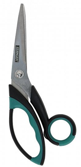 Наличие европодвеса: Да Упаковка: картонная упаковка try-me card Цвет основной: черно-бирюзовый Длина ножниц, мм: 180 Длина лезвия, мм: 85 Материал ручек: пластик с резиновыми вставками Мин. партия и варианты упаковок: 1 / 12 / 240 Ножницы Stanger 180 мм черно-бирюзовые, эргономичные ручки пластиковые с резиновыми вставками