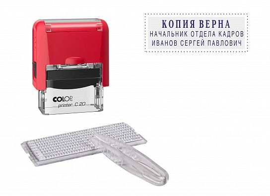 Материал: пластик Тип: самонаборный Вид штемпельных принадлежностей: Штамп Цвет чернил: синий Форма: прямоугольная Размер оттиска: 14х38 мм Мин. партия и варианты упаковок: 1 / 25 Штамп самонаборный PRINTER Compact С20/3-Set 14х38 мм 3 строки 1 касса красный пластик