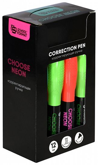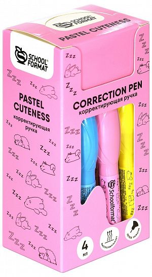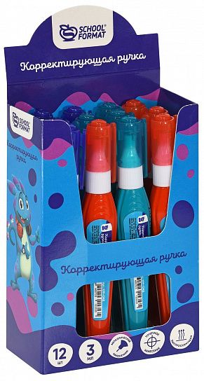 Механизм корректора: маталлический наконечник Объем, мл: 4 Цвет корпуса: ассорти Упаковка: картонный дисплей Основное вещество корректора (состав): быстросохнущая Торговая марка: Schoolformat Мин. партия и варианты упаковок: 1 / 12 / 1200 -