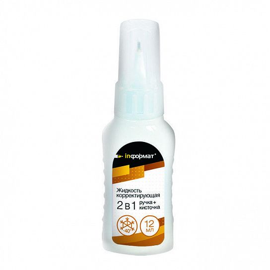 Механизм корректора: маталлический наконечник Объем, мл: 12 Цвет корпуса: белый Упаковка: картонный дисплей Основное вещество корректора (состав): спиртовая Торговая марка: INFORMAT Мин. партия и варианты упаковок: 1 / 12 / 72 -