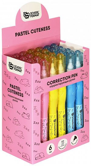 Механизм корректора: маталлический наконечник Объем, мл: 6 Цвет корпуса: ассорти Упаковка: картонный дисплей Основное вещество корректора (состав): быстросохнущая Торговая марка: Schoolformat Мин. партия и варианты упаковок: 1 / 24 / 576 -